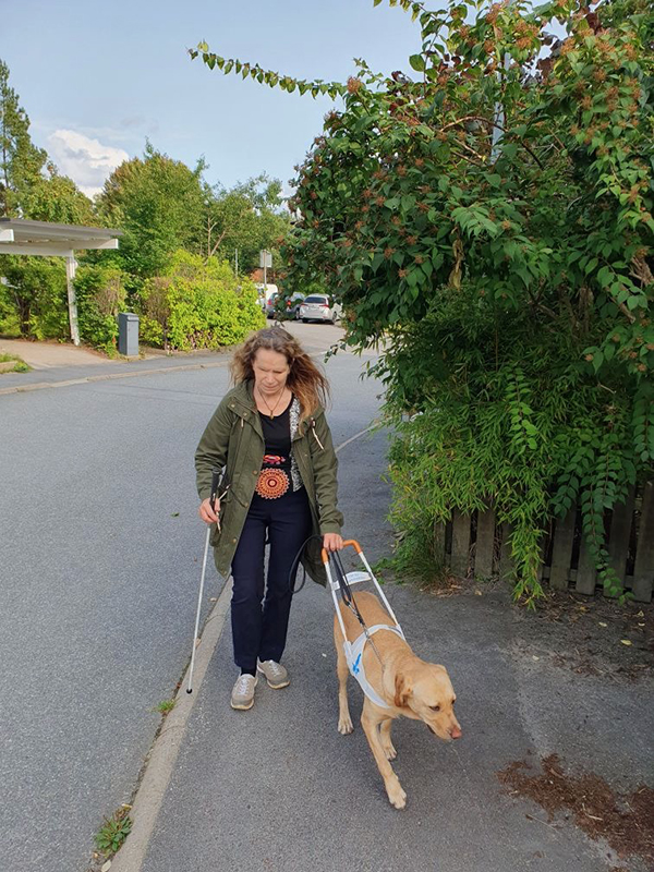 – Det är svårt att uppfatta utrop på bussar och tunnelbana, och omöjligt att orientera sig om man kommer till en okänd plats. Jag och ledarhunden har ibland hamnat på fel tåg eller buss. Då får man fråga sig fram.